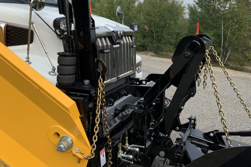 The ELP Harness Series II features a completely detachable frontal harness with a hydraulic attachment for quick plough removal. Its candy cane style attachment ensures easy install and removal of the front plough. The integrated side wing attachment allows for seamless installation and removal of all snow removal equipment, including the plough, harness, and wing, in one go.