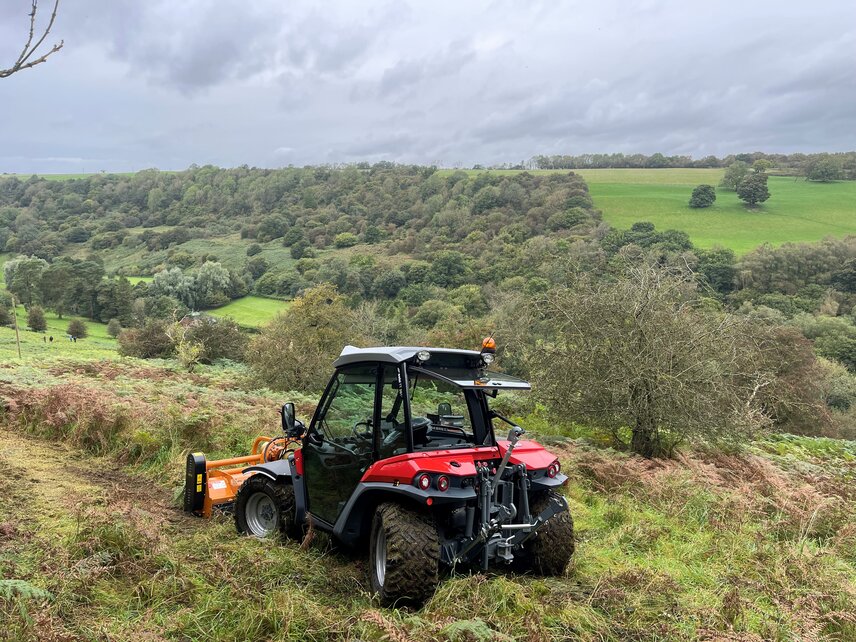 The Ballynatray Estate in southern Ireland has turned to the Aebi TT 281+ slope tractor to tackle dense vegetation and steep terrain. Equipped with wide tyres, all-wheel steering and a flail mower, the machine made quick work of thick growth up to four feet high, leaving slopes in pristine condition. Learn here how the estate is benefitting from the TT’s versatility and safety.