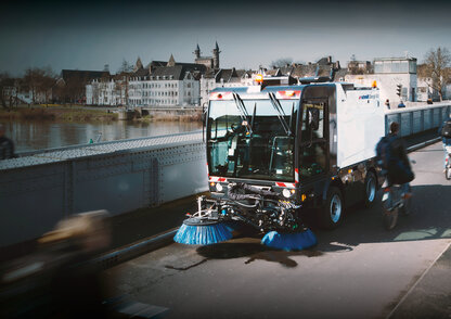 Die vollelektrische eCleango 550 ist eine kompakte und robuste Kehrmaschine für tägliche Reinigungsarbeiten im innerstädtischen Bereich. Die modernisierte Kabine bietet einen großzügigen und übersichtlichen Arbeitsplatz mit hohem Komfort und einem intuitiven Bedienkonzept. Sie arbeitet leise und emissionsfrei was sie zu einer starken Lösung für zukunftsorientierte Kommunen macht.