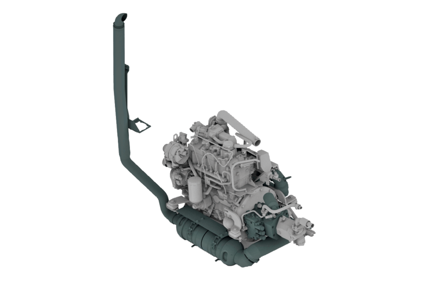 Die Basisausführung verfügt über einen leistungsstarken EuroMot 5 Motor mit 55 kW (75 PS), der ein hohes Drehmoment bietet. Dieser Motor arbeitet ohne zusätzlichen Harnstoff (AdBlue). Als Alternative steht ein Euro 6c Motor mit 62 kW (84 PS) mit modernem Abgasnachbehandlungssystem mit Diesel-Oxidationskatalysator, geschlossenem Partikelfiltersystem sowie Harnstoffeinspritzung (AdBlue) und SCR-Katalysator zur Wahl. Einzigartig in dieser Maschinenkategorie ist die kompakte Integration des 4-Zylinder-Euro 6c-Motors mit gegenüber früheren Versionen gleichbleibendem Radstand. Motor und AdBlue-Tank sind perfekt in das Chassis integriert, sodass die Wendigkeit und Manövrierbarkeit der Swingo 200+ nicht beeinträchtigt wird.