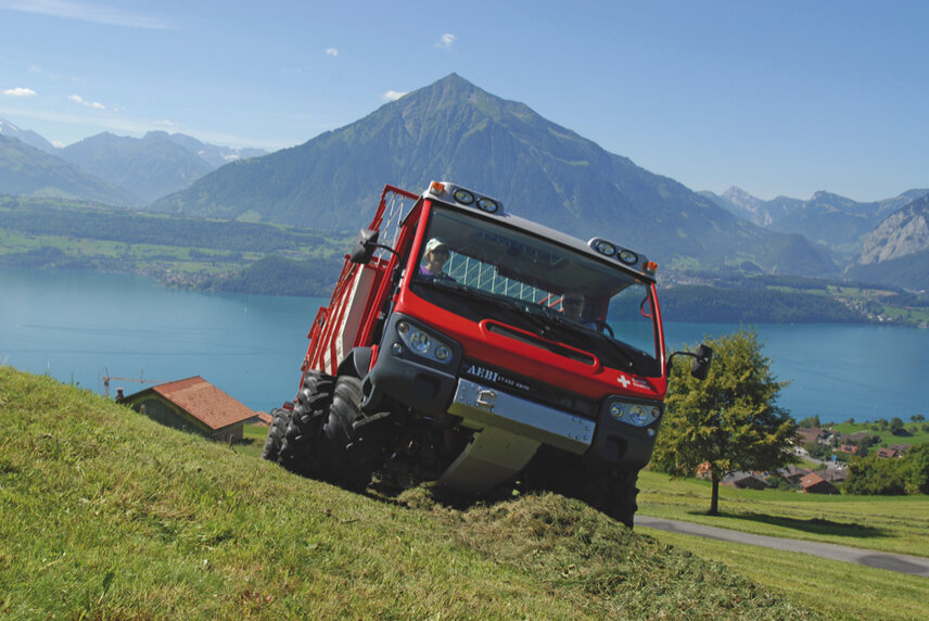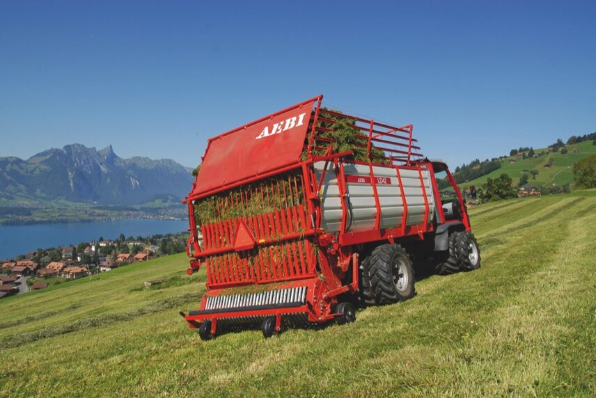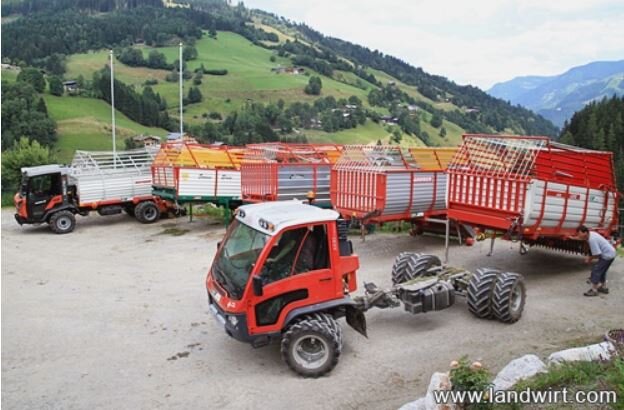 Zusammen mit der BLT Wieselburg haben die Redakteure des Magazins Landwirt fünf Ladewagen-Aufbauten unter die Lupe genommen. Auf dem Testbetrieben im Pinzgau waren sowohl beim ersten und zweiten Schnitt ideale Testbedingungen für den Vergleich vorzufinden. Die BLT Wieselburg unterstützte bei der technischen Leistungsabnahme sowie bei der Beurteilung der Rech- und Schnittqualität. Als Trägerfahrzeug diente u.a. ein Aebi VT450 Vario mit Allradlenkung und langem Radstand. Das Aebi LD42L überzeugte dabei gleich in mehreren Kategorien. Viel Lob gab es für den einfachen Auf- und Abbau, aber auch in den Kategorien Laderaum, Klappen Dürrfutteraufbau, Entleerung, Pick-up , Schnittlänge oder Bedienung der Heckklappe erzielte das LD42L die Höchstpunktzahl. Zudem ermöglicht es den kürzesten Schnitt und ist daher besonders gut für Silage-Betriebe geeignet. Das Resüme der Tester: Laden können alle 5 Hecklader, die Unterschiede liegen vor allem im Handling und der Verarbeitungsqualität.