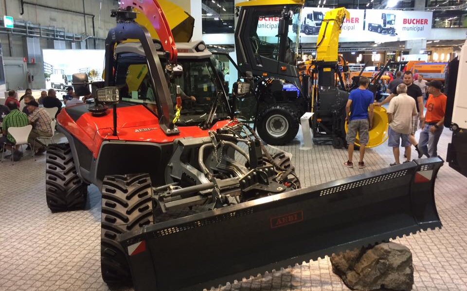Für den Winterdienst waren diverse Schneepflüge und Streuer von Schmidt am Stand vertreten. Auch der neue Aebi Terratrac TT281 präsentierte sich mit Überkopfwinde und Raupenfahrwerk als ideales Winterdienstgerät. Sogar die Präparierung von steilen Skipisten ist mit dieser Ausrüstung problemlos möglich.