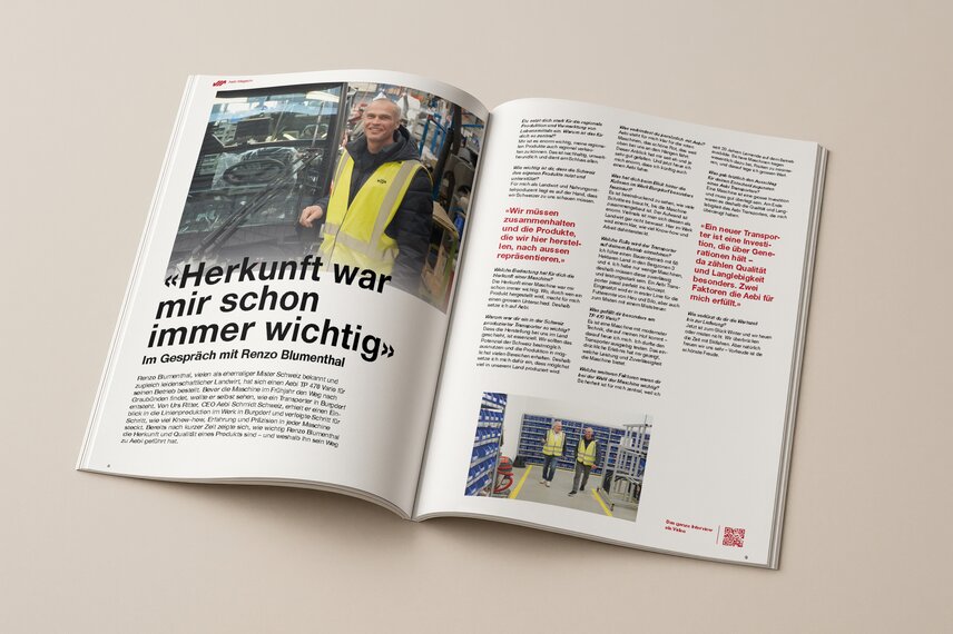 Im aktuellen Magazin stellen wir die komplett neu entwickelte Motormäher-Baureihe vor – mit Achsverschiebung, patentiertem Geräteantrieb und noch mehr Effizienz im Hang. Daneben beleuchten wir, wie bodenschonende Technik nachhaltige Futterproduktion im Berggebiet unterstützt. Persönliche Einblicke liefert das Gespräch mit Ex-Mister Schweiz Renzo Blumenthal, der erklärt, warum ihm die Schweizer Herkunft von Maschinen besonders wichtig ist. Bewegend ist auch die Reportage aus Blatten: Sie zeigt, wie sich betroffene Landwirte nach dem Bergsturz Schritt für Schritt eine neue Zukunft aufbauen – und wie Aebi sie dabei unterstützt. Viel Freude beim Entdecken und Lesen.