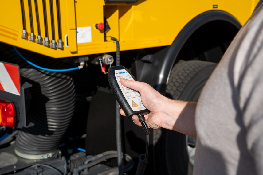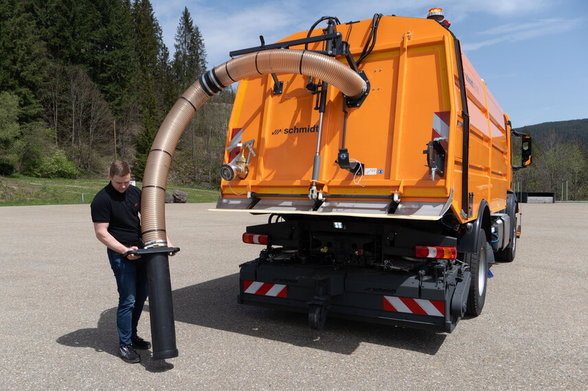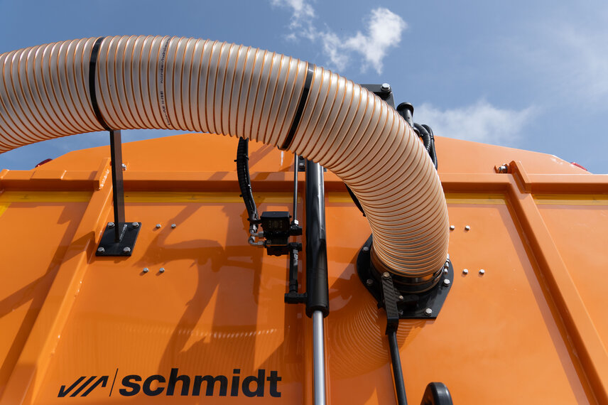 The equipment recommended by Aebi Schmidt experts includes the permanent magnet bar, the disc brushes and two blast nozzles. In addition, we recommend the rear suction unit with the optional quick-change system for the liquid suction unit, which is particularly characterised by its flexibility and maintenance-optimised design. The concluding feature is the exhaust air diffuser installed in the hopper, which is engineered for a secure work process. We also offer the following configuration options as series standard: