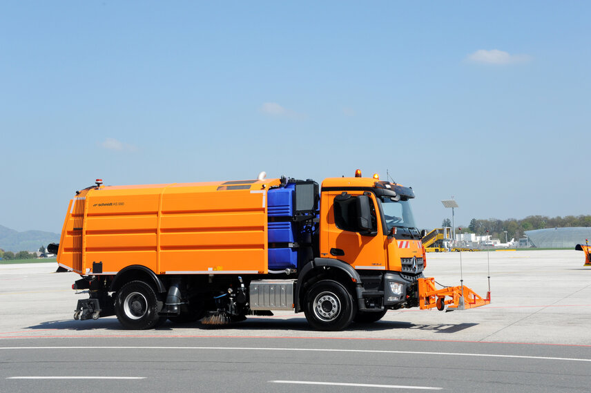 The Schmidt AS 990 / ASC 990 delivers perfect sweeping results with a large area coverage and at the same time ensures safe traffic routes on the entire airport site. Thanks to the permanent magnet bar, two disc brushes, the blast nozzles mounted on both sides and the rear-mounted suction unit, the machine cleans large areas comprehensively and quickly in a single pass. Objects of various types and origins (FOD, metals, dirt, leaves, etc.) are reliably removed. With the optional and quickly exchangeable liquid suction unit, the AS 990 / ASC 990 offers a complete solution.