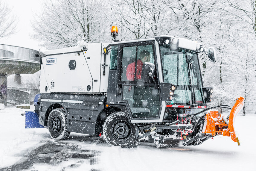 For around 7 years, Pipjorke has been responsible for winter maintenance work at Düsseldorf airport, among other things. First just in the context of cleaning work in public areas, on pavements and in parking areas, and the removal of quantities of snow from the apron. For 5 years, Pipjorke has also supported Flughafen Düsseldorf GmbH on the apron with winter maintenance devices for clearing the entire apron. Initially just with large devices, but now for two years also with small devices on pavements and around the so-called “fingers”, i.e. the passenger boarding bridges. In the other months of the year, the company uses two Schmidt Swingo 200 sweepers. So why not use the Schmidt Swingo’s potential in winter too?!