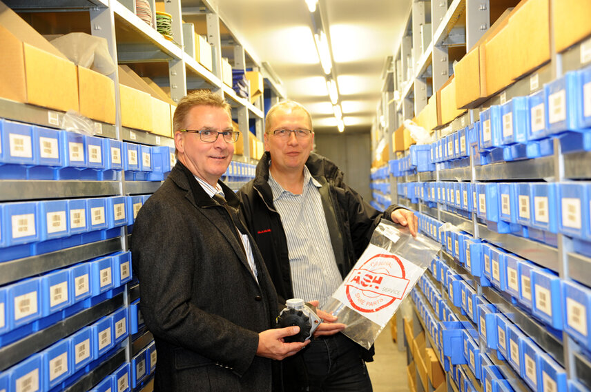 Over 5300 m2 of space inside, there are rows and rows of high-bay racks. There is then also 2800 m2 of outside storage space. Deliveries of goods are received at the warehouse every day and distributed to one of the 76,000 storage bays, more than 44,000 spare parts in total are actively stocked – ranging from screws to an 8-metre-long roller core. 1267 different suppliers deliver goods to the logistics centre. “Many of the spare parts feature our know-how or individual adaptations. But every single one of them boasts our high demand for quality,” says Udo Posteher. “Every spare part is thoroughly examined again before it is sent out and all original parts come with a 12-month guarantee. In addition, the use of ASH original parts guarantees that the machines will work optimally and that all general legal conditions relating to machine safety and operator safety are complied with.”