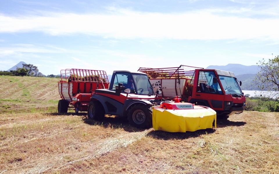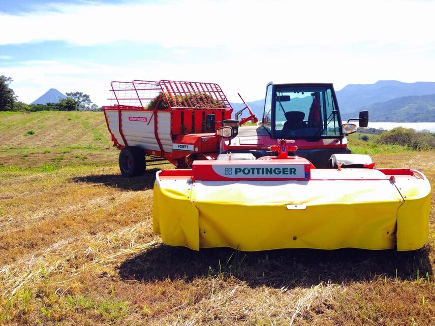 Stefan Ulrich from Pilatus SA in San Jose is Aebi dealer for many years now. “The Aebi machines are mainly used for mowing – in the lowlands as well as in mountain region” Stefan Ulrich says. “A Combicut of one of our customers is daily mowing green fodder for about 60 dairy cows at nearly 3000 meters above sea level, but at the same time other customers work their machines directly at the coast at 0m. The TT220 was the first of his kind in Costa Rica. The mow-loading combination was a hit because it is extraordinary and extremely efficient. At the moment I am working on adjusting a plough on a Combicut for working on potato fields to further expand the possible application. Also currently the first CC110 arrived, I will have to pick them up at the custom control within the next days and it will then be delivered to the customer. I am convinced of the CC110 and I believe strongly that it will become a bestseller in Costa Rica.”