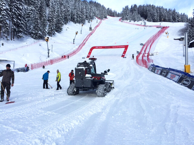 Also at the Ski World Cup in Crans Montana (CH) this weekend they are in use: the Aebi TT280 with crawler tracks, snow plow and overhead winch and his “colleague” on wheels and wiyth snowblower. Together they both support the numerous volunteers on and beside the ski slope to create optimal conditions for athletes and visitors. We wish the organizing committee a lot of success and all athletes and visitors an exciting competition.