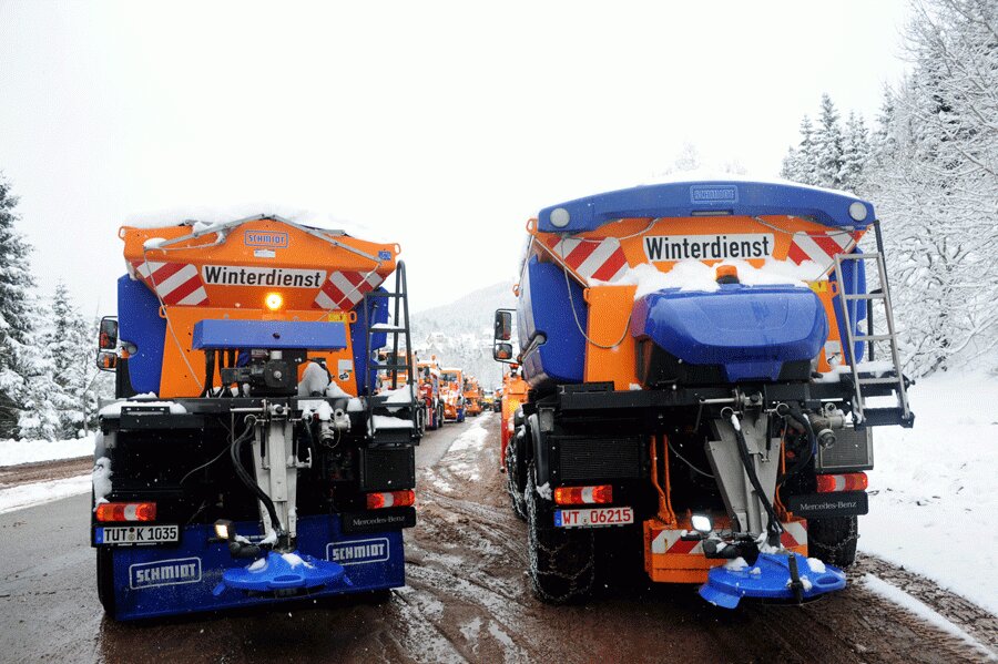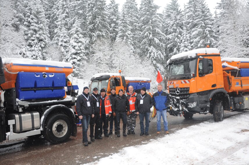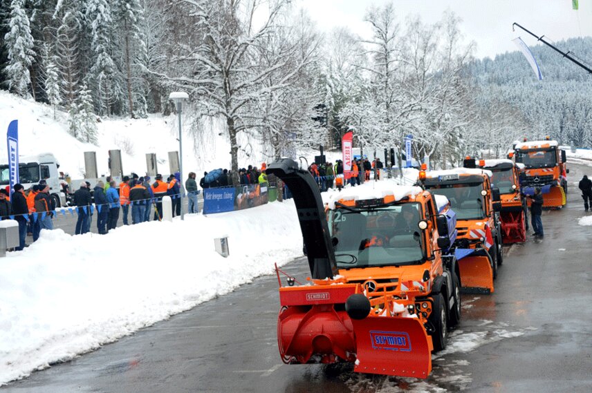 If concentrated winter service competence meets several hundred experts in the sector of municipal it is time for „Winter-Tour“ of SKSW Knoblauch and Wilhelm Mayer Nutzfahrzeuge. As in previous years the ASH Group supported the expert conference with vehicles and equipment of the brands Aebi and Schmidt. 11 different machines for winter and municipal services were presented at the final event in Schluchsee (in black forest region), for example the compact sweeper Schmidt Swingo 200+, the Aebi TT280 or Aebi MT with semitrailer or the Schmidt Stratos spreaders of the newest generation. With light snowfall and winter temperatures, the team of Aebi Schmidt Deutschland GmbH felt at home – during the vehicle guidance and the exhibition afterwards. A successful event and good teamwork. We are already looking forward to the next Winter-Tour in 2017.