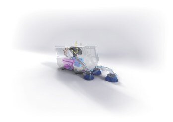 The pressurised water recirculation system ensures large amounts of water in the suction system of the Swingo 200+, enabling reliable and low-wear collection of dirt. The optimum water recovery system guarantees compacted and semi-solid debris. The hopper capacity of 2 m3 is utilised optimally to guarantee the efficient handling of resources. The new system comes with a 190-l fresh water tank and a 190-l water recirculation tank (in the Euro6 variant: 170-l water recirculation tank). The tank can additionally transport up to 250 l of circulating water. The pressurised water recirculation system is fitted as standard in the 2- and 3-brush models. The Koanda air circulation system is available for the 3-brush model as an option.