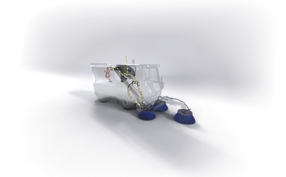 A new high-performance suction nozzle (option) brings a significant increase in efficiency while reducing the suction fan speed, which, in turn, reduces the diesel engine output, saving up to 15% operating costs or 1 l of fuel per hour of operation. Assuming 1,500 hours of operation per year and a fuel price of € 1.30 per l, this yields savings of € 1,950 as well as 3,930 kg less CO2 emissions annually.