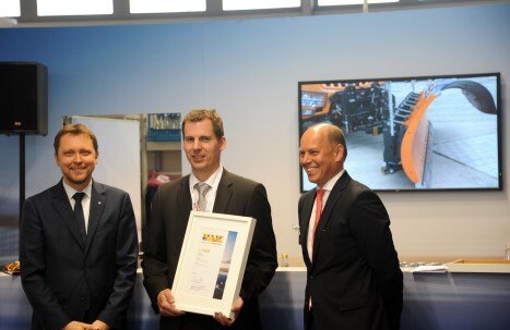 On the second day of the trade fair, the representatives of the Schmidt Division experienced another pleasing highlight. VAK e.V., the Municipal Vehicles and Equipment Industry Association, presented an innovation award for municipal vehicles and equipment for the first time on the occasion of the IFAT 2016. The combination of pressurised water recirculation and Koanda air circulation system of the Swingo 200+ convinced the panel of judges consisting of members of user associations as well as press and university representatives. The presented innovation reduces the emission of harmful particulate matter during sweeping operations by up to 95%, making the Swingo 200+ the most eco-friendly compact sweeper in the market. “We are delighted to have received the VAK award and congratulate our colleagues from the development department on this technical masterpiece”, Rudi Rosenkamp says. “The Koanda air circulation system and the new, intuitive control lever are more than just innovations to us – they are important milestones in continuing to maintain our role as trailblazers in the future. In 2015, we were able to once again strengthen our market leadership in the class of compact sweepers. Our customers’ trust in us fills us with pride and encourages us in our work and our vision. We are on a clear track in the truest sense of the world.”