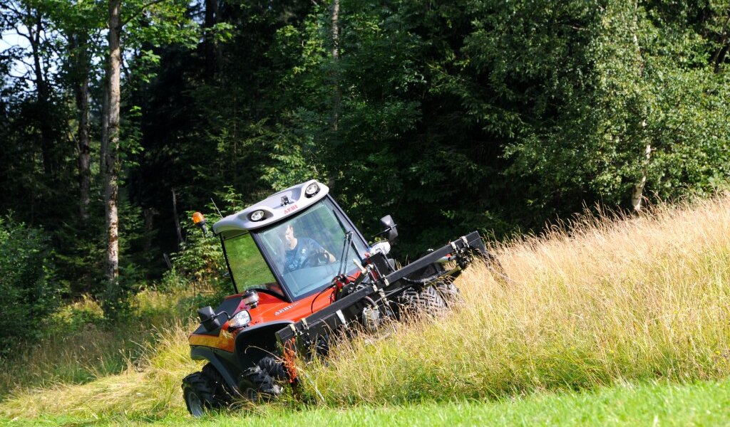 Another important factor is that double-blade-mowers treat amphibians and insects with care. The number of badly injured and killed animals during the mowing process is verifiably a multiple when using a Rotary Blade Mower. Last but not least with a double-blade mower there is no risk of solid bodies, e.g. stones being shot around the field damaging machines or even injure humans. The enormously agile and manoeuvrable Aebi TT211 is even suitable for particularly narrow and impassable meadows and guarantees rapidity and comfort at work. Gentle and clean.
