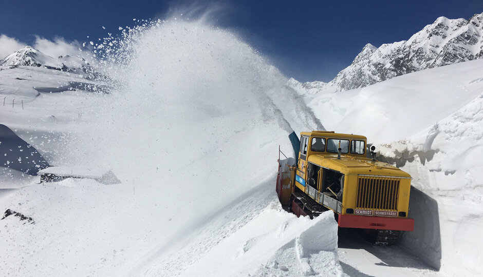 Despite two meters of fresh snow on the High Alpine Road, the snow removal on the Timmelsjoch is progressing rapidly. It should be unlocked in just two weeks.