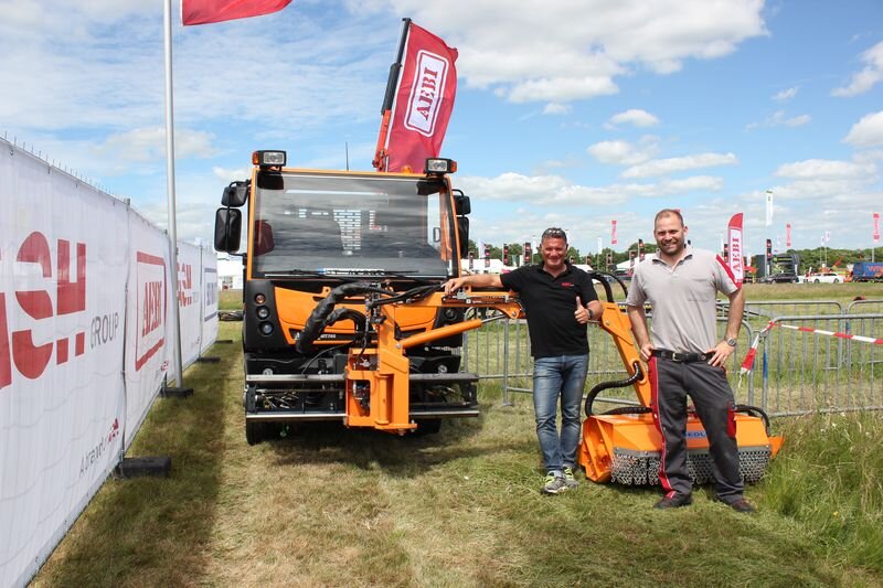 Anyone who buys a new machine in the municipal sector is always faced with the same question: What type of drive system do I use? Because each of them has its advantages, but also its disadvantages. While a mechanical travel drive impresses with its high degree of efficiency, the machine with hydrostatic drive can be maneuvered very sensitively thanks to its stepless drive. The Swiss company Aebi has now tried to combine the best of both travel drives and therefore equipped the MT740 and MT750 implement carriers with semi-hydrostat. In order to show the advantages for the user, Sales Manager Charles Boné and Product Manager Philipp Hohl invited the editors of Bauhof-online.de to their stand one day before the opening of demopark 2017 and demonstrated the MT740 with semi-hydrostatic transmission.