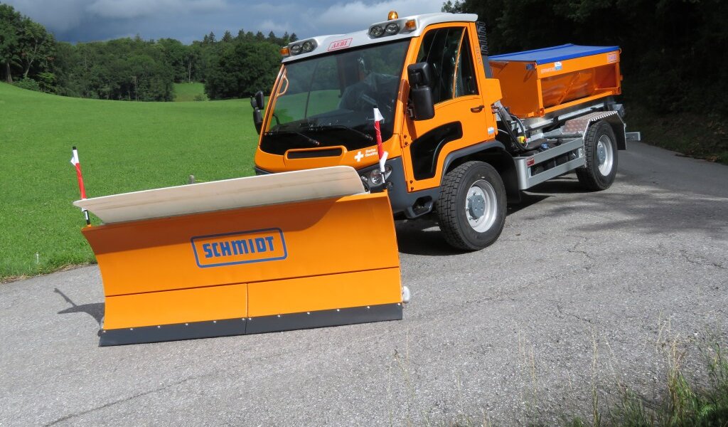 The equipment with a Schmidt flat silo spreader with 1.7 m3 as well as a 2.60 meter Schmidt MPC snowplough offers ideal conditions for efficient snow removal and ice clearance. The transporter with 109 hp, a total weight of up to 8.5 tons and equipped with its unique, continuously variable drive, is already eagerly awaited by the road maintenance team. The cab provides the highest comfort, and the control of the attachments is also effortless and intuitive with the innovative CX control.