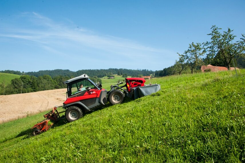 “In our area, single-axle machines have been and still are used a great deal. Up until 1996, we also only used hand-guided machines until I decided for health reasons to switch to a two-axle vehicle. I was one of the first people in my area to set about mowing with a two-axle mower. I was bound to receive the odd surprised and curious look when I did this. For suddenly work out in the field was not only comfortable, but could of course also be accomplished much faster than on foot. I soon started receiving more and more requests from neighbours asking whether I could also do some mowing for them. This is how I inadvertently discovered a gap in the market. Admittedly, the first implement carrier was not an Aebi. However, because its reliability and performance repeatedly reached its limits as the workload increased, in 1999 I decided to opt for an Aebi TT50 and have remained loyal to the brand ever since. Every season I am contracted to mow around 300 hectares. After more than 3000 hours in the TT50, the switch to an Aebi TT240 in 2008 then became more than necessary. It was a giant leap in terms of performance capability and of course comfort as well. For a long time, I was convinced that it would not be possible to better the machine until in 2016 I was persuaded to change my mind. The Aebi TT281 won me over right from day one. When I was able last summer to sneak a few glimpses of the prototype on trial runs, it was clear to me that I had to have this vehicle, and specifically the very first one in the series. A pioneer for a pioneer as it were.”