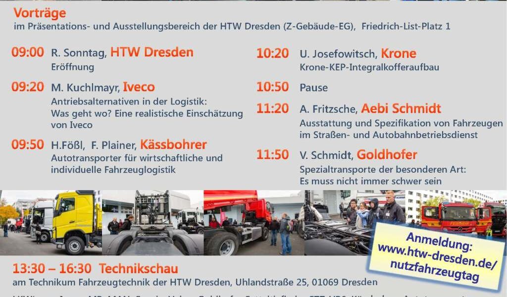 It's that time again on October 20, 2017. From 9:00 am to 4:30 pm, the “Commercial Vehicle Day” at the HTW Dresden will present the diversity of the industry, highlight career opportunities, arouse interest and enthusiasm for commercial vehicle technology and present “technology you can touch”.