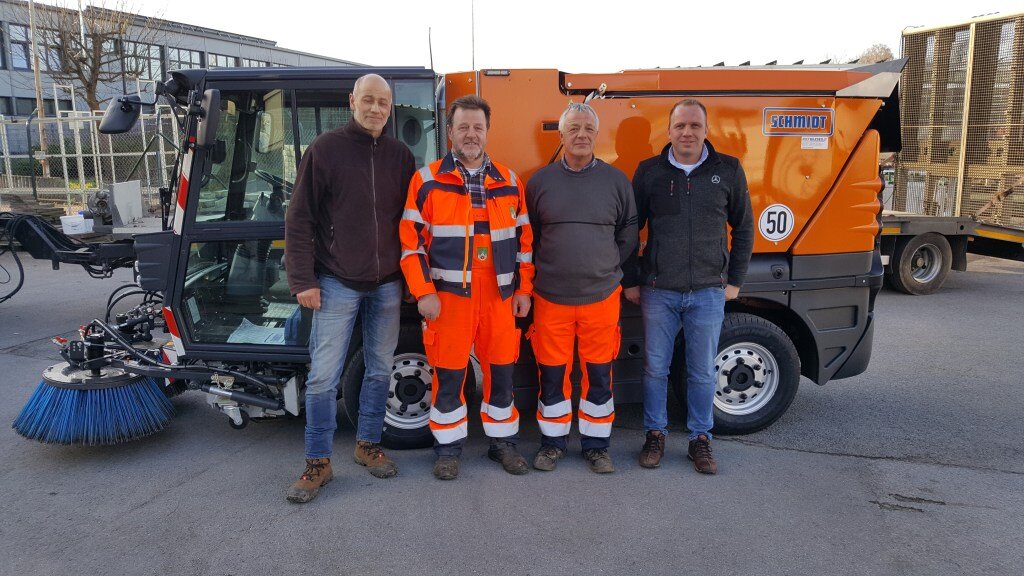 The city of Blomberg in North Rhine-Westphalia receives a new Schmidt Swingo 200+ compact sweeper. Delivery and instruction were carried out by Günter Scherf from RKF Bleses GmbH in Bielefeld. We wish the team in Blomberg a good trip and lots of fun with their new "colleague".