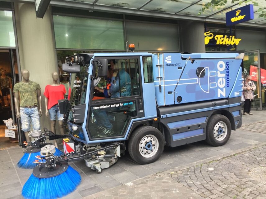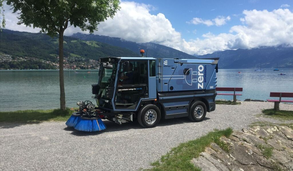 The city of Thun (Bernese Oberland) will have electric sweepers from 2019. The eSwingo 200+ not only offers CO2-neutral operation and a lower noise level: “The high suction capacity and general performance, even on challenging gradients, impressed those in charge of the commission,” says Guido Anderhub, Sales Consultant and sweeper expert, who has been working at Aebi Schmidt Switzerland for 44 years. Thun will therefore be the first municipality in Switzerland to use the new electric compact sweepers, which were first presented in May 2018 at the IFAT trade fair. The eSwingo 200+ signals a new era in sweeping technology at Aebi Schmidt. “We offer our customers a high-performance sweeper with a hopper size of 2m³ and two battery packs. A powerful rechargeable battery with a capacity of 75 kWh facilitates runs of up to 10 hours without recharging. The eSwingo 200+ offers a unique combination of efficiency and sustainability. It also enables savings of up to 85% of the energy costs and 70% of the maintenance costs, and the customer benefits from a longer life cycle in comparison to a model with a diesel motor.