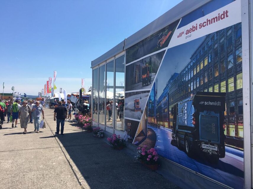 Numerous guests came to the Aebi Schmidt Group exhibition stand in perfect summer weather. Among other things, our new Flexigo 150 will be there - the compact all-rounder for year-round applications.