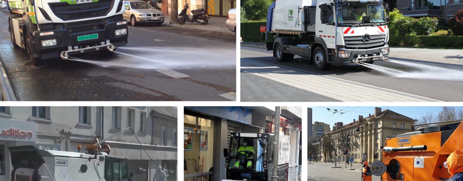 The list of our sweepers, washers and sprayers with tanks that are usually filled with water is long: Flexigo, Swingo, Cleango, SK, CityJet, Straliq CityJet, Senior, Wasa, MSH and more. In addition to their day-to-day business, our colleagues in charge had to deal with a large number of queries in the past few days concerning the material compatibility of a wide range of disinfectants. There are no official recommendations, so each authority decides independently whether and, if so, which substances will be used for disinfecting large areas.
