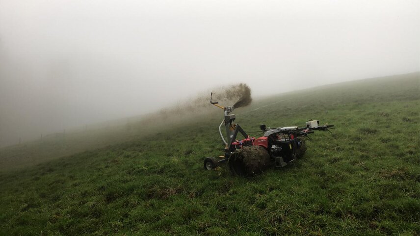 Stefan Gempeler has an Aebi CC 66 with 23 hp and a CC 110 with 8 hp – for his own use and for use by his customers. He uses the CC 66 for heavy work, for example together with the two mulchers, the 3.1 m wide mowing bar or a large snow cutter. He has also built a pasture harrow for this himself, as well as his own manure spreader. The advantage of this self-built manure spreader is that Stefan Gempeler can use it on the CC 66 and on the tractor. This also makes the device much more versatile and there is an equally big demand for this attachment – both together with the CC 66 but also by itself. “It’s actually very rare to see manure spreaders being used on single-axis machines,” says Stefan Gempeler. “But my device shows that this often makes sense.”