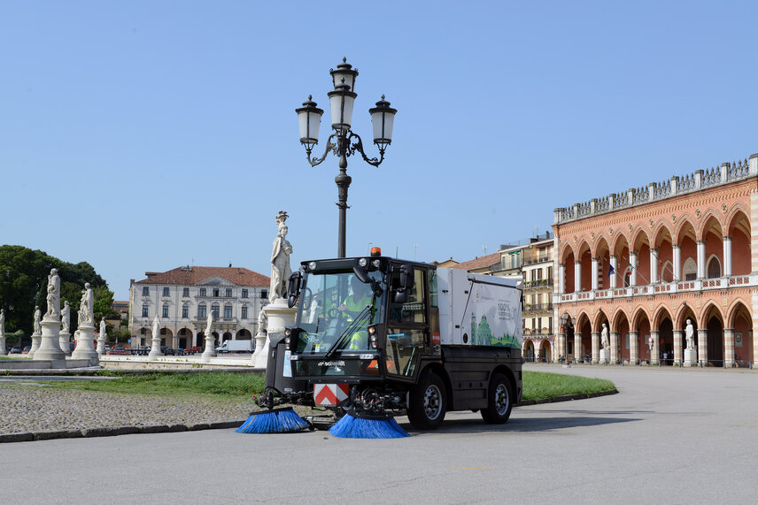 Also on a local level, Padova has implemented the approach of teaming up to move forward and created a broad alliance. One of several partners of the city administration is the municipal service provider AcegasApsAmga. The company estimates that it will save 50,000 tonnes of CO2 emissions every year thanks to various measures. Various measures in the areas of waste management and water supply contribute to this, as do electric drives for the vehicle fleet in general and the sweepers in particular.