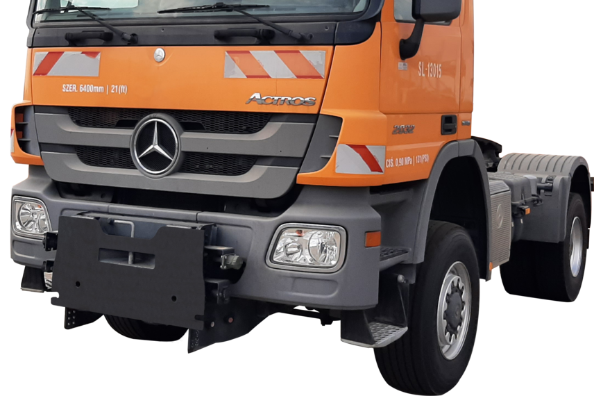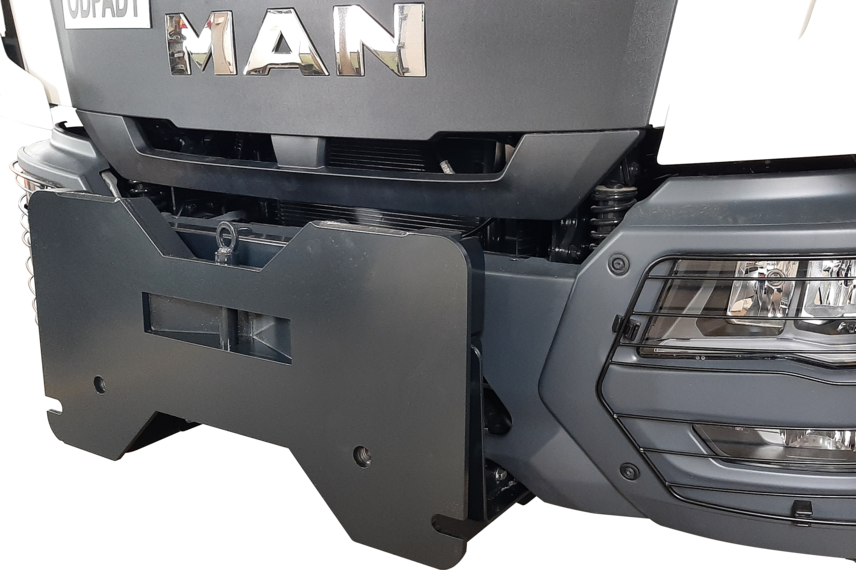 Whether car, truck, tractor or wheel loader, for almost every vehicle there is a standardised mounting plate or one individually adapted to the vehicle frame. It goes without saying that the coordinated mounting solutions are provided with a manufacturer's clearance certificate (UBB). On request, it is also possible to integrate an intelligent sensor technology which automatically switches to winter lighting when a snow plough is attached. The protective cover for the front mounting plate minimises the risk of injury to other road users.