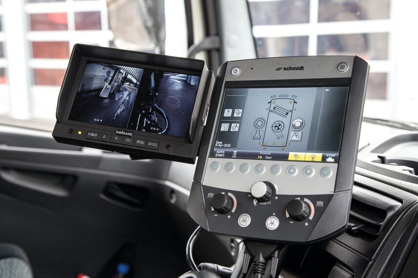 With the spreaders, a voice confirmation is also available for command inputs. In addition to the visual confirmation, the control panel also repeats and acknowledges the commands in a clearly audible manner. The voice confirmation can be switched on and off by the driver at any time. If desired, a rear camera image can also be shown directly on the display.