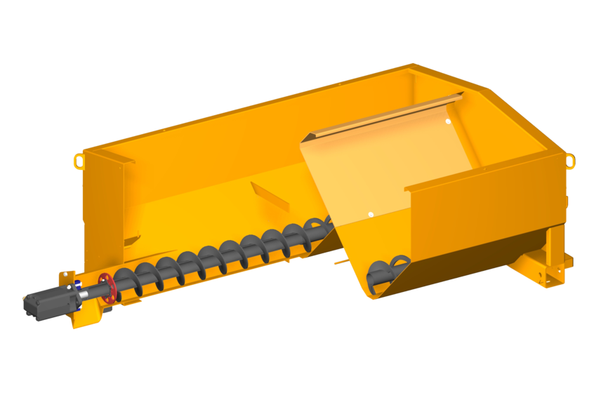 The D series' twin auger conveyor system boasts a particularly flat hopper design and maximum utilisation of the vehicle width. The separately operated and directly controllable auger conveyors allow flexible spreading of various spreading materials. A two-stage incline of the augers guarantees uniform emptying of the hopper. The hydraulic motor with direct drive has a high torque for a stable and safe start-up.