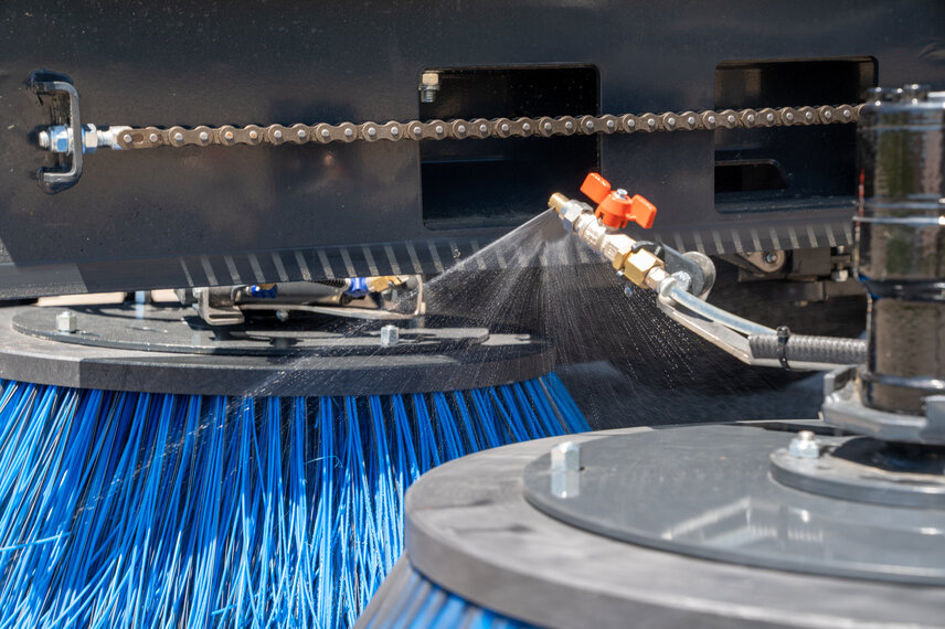 - Ground pressure on each disc brush can also be adjusted individually from the driver’s cab. This enables convenient and thorough sweeping of right-angled corners, gutters and hard-to-reach areas.