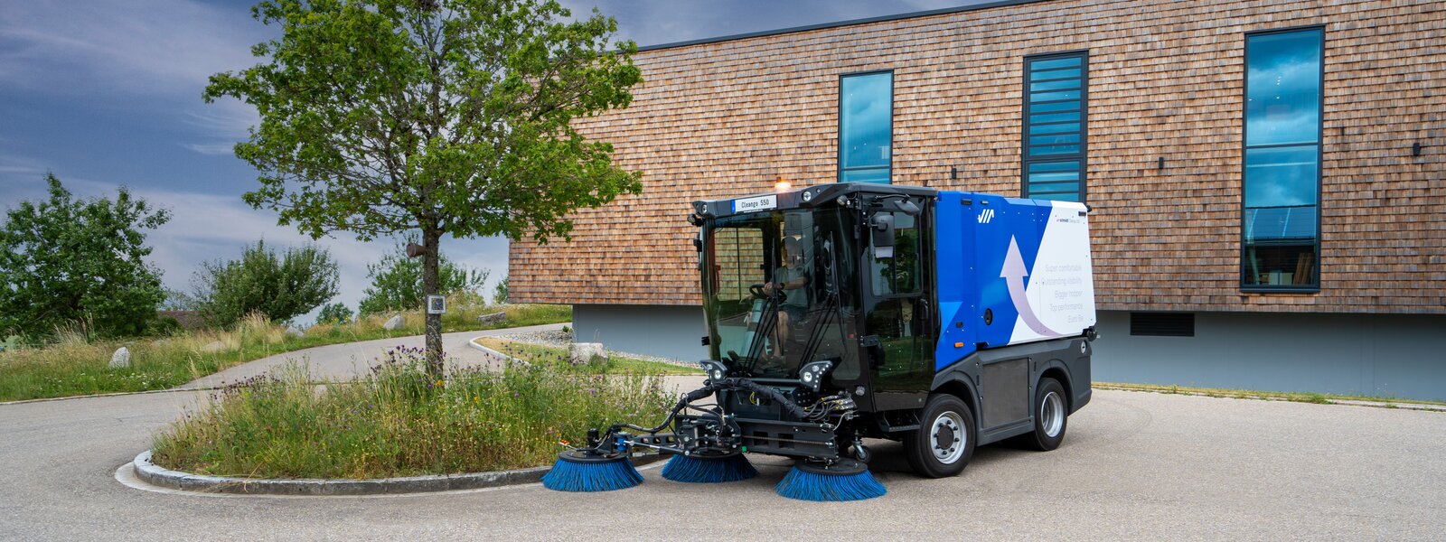 The design of the cab focuses on operational comfort and ergonomics. The windscreen extends completely to the cab floor to offer optimal visibility from inside the spacious cab. A special highlight is the new convex rear windows in the rear edge of the cab, which provide an unparalleled field of view of almost 250°. Two large wing mirrors additionally offer a perfect view of the working area and surroundings. An observation window in the cab floor provides an unobstructed view of the suction shaft and the disc brushes.