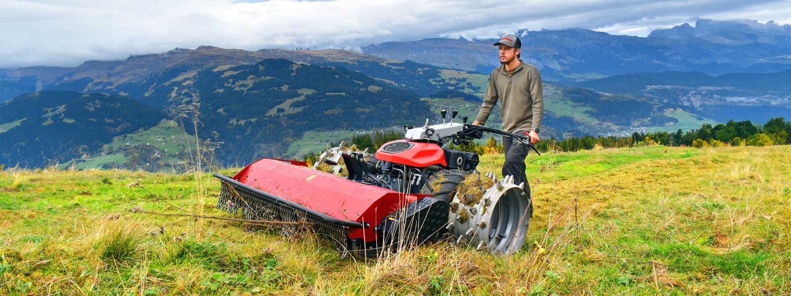 Si es necesario mantener zonas verdes en terrenos difíciles o escarpados, o trabajar en terrenos delicados, la ligera Combicut no ofrece más que ventajas. El uso de aperos anchos y el guiado ligero de la máquina dan como resultado un alto rendimiento de trabajo. Además de los implementos de siega con barra, pórtico, mayal o segadora rotativa, también se pueden acoplar muchos otros implementos mediante el sistema de enganche rápido. Los implementos se pueden cambiar rápidamente y sin herramientas. Cuchilla quitanieves, soplador de nieve, cepillo barredor, barredora, desbrozadora, grada rotatoria - la variedad de implementos disponibles casi no conoce límites y convierte a la Aebi Combicut en una auténtica todoterreno.