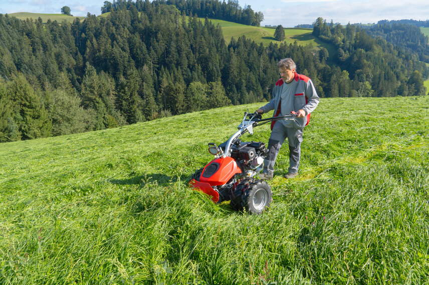 La especialidad de la Combicut es sin duda la siega. Dependiendo del modelo, es posible conseguir anchuras de trabajo máximas de 1,90 a 2,20 m. El sistema de enganche rápido permite utilizar otros implementos. La trituración con la trituradora de mayales o la limpieza de nieve con el arado o la fresadora son otras aplicaciones posibles que aumentan significativamente la utilización de la máquina básica. La Combicut no sólo es muy cómoda de manejar, sino también extremadamente versátil.