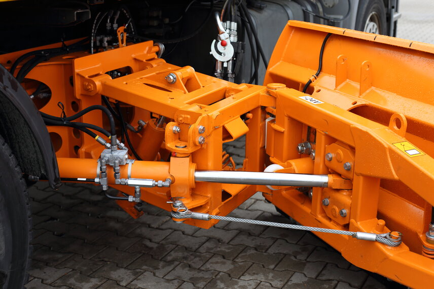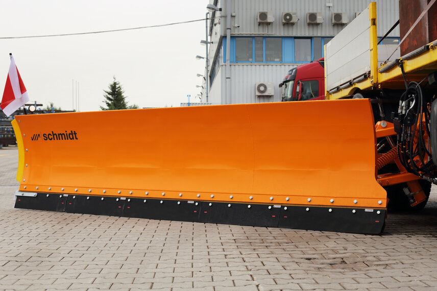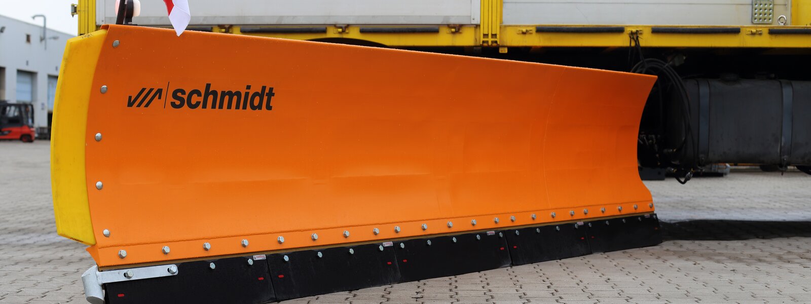 The Schmidt CPS side snow plough is easily attached to the truck thanks to the quick attachment system. The mounting plate F1 with a hydraulic locking system allows it to be mounted and dismounted swiftly on the carrier vehicle. Also availabe with the Schmidt standard mounting plate.