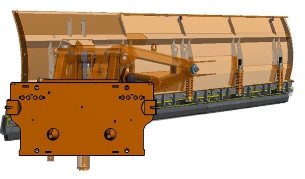 The CPS has a rotating point lifting system with integrated tension springs for automatic horizontal adjustment to a road surface to reduce ground pressure during snow clearing operation.