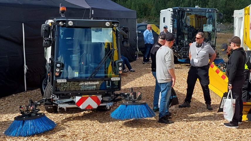 Jo messujen ensimmäisinä päivinä kävi selväksi: kestävyys ja päästöttömät teknologiat ovat korkealla kaupunkien ja kuntien asialistalla. Kaksi täyssähköistä Schmidtin lakaisukonetta – eCleango 550 ja eSwingo 200+ – herättivät runsaasti huomiota kaikkien kolmen messupäivän ajan.