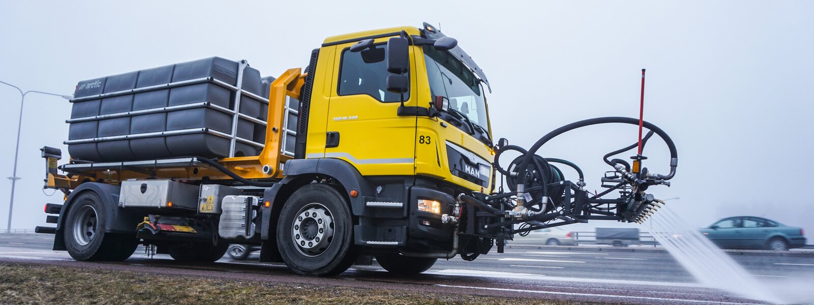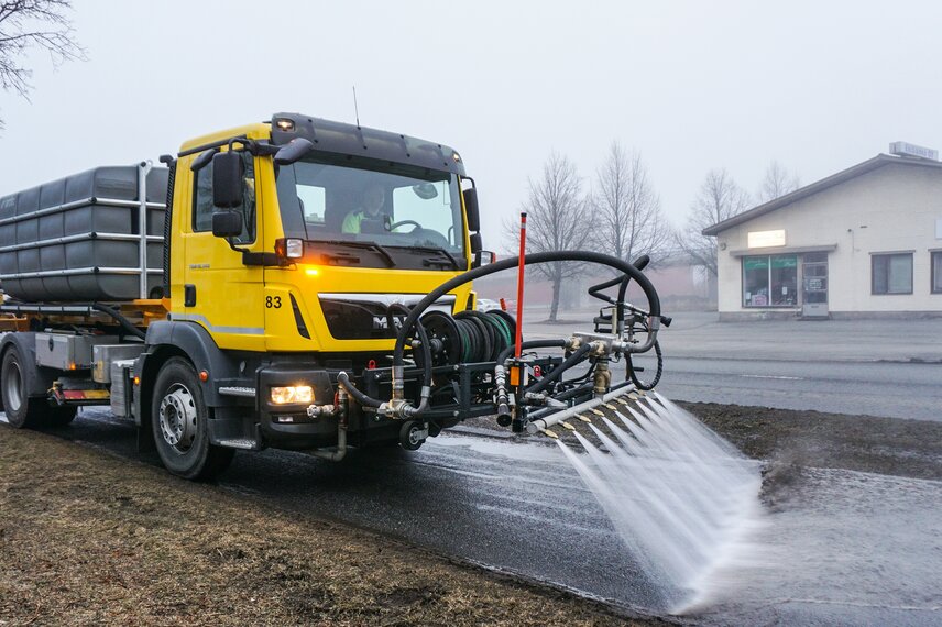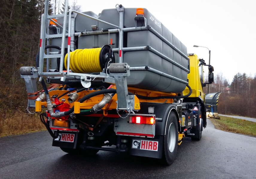 The electric hose reel extends its range of applications from simple street cleaning to cleaning other infrastructure, green areas and urban furniture. The 20-metre hose allows cleaning of bridges and many traffic areas such as stairs, bus stops, retaining and noise walls and parking lots. The adjustable nozzle allows you to choose the spray pattern to suit the job, from spot washing to misting used for watering flowers without damaging plants. The hose reel can be installed either on the tank or on the SCW wash head.
