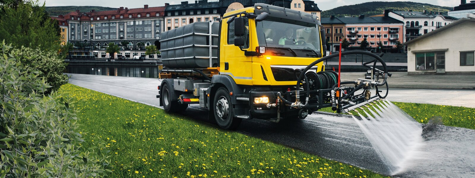 Lateral movement of the washing head by up to 50 cm each side allows the washing of kerb stones, street gutters, and the edge of the pavement without driving on it and preventing possible damage from the heavy truck.