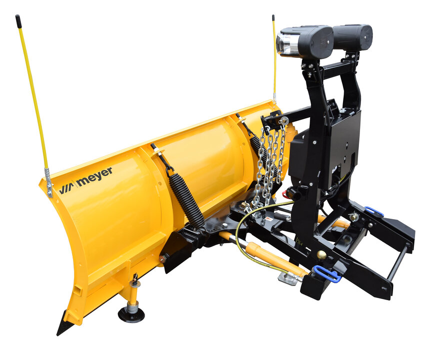 The spring tension release latches allow quick and easy mounting or dismounting of the blade from Meyer’s renowned truck mount and clevis pin, all from the side of the plough.