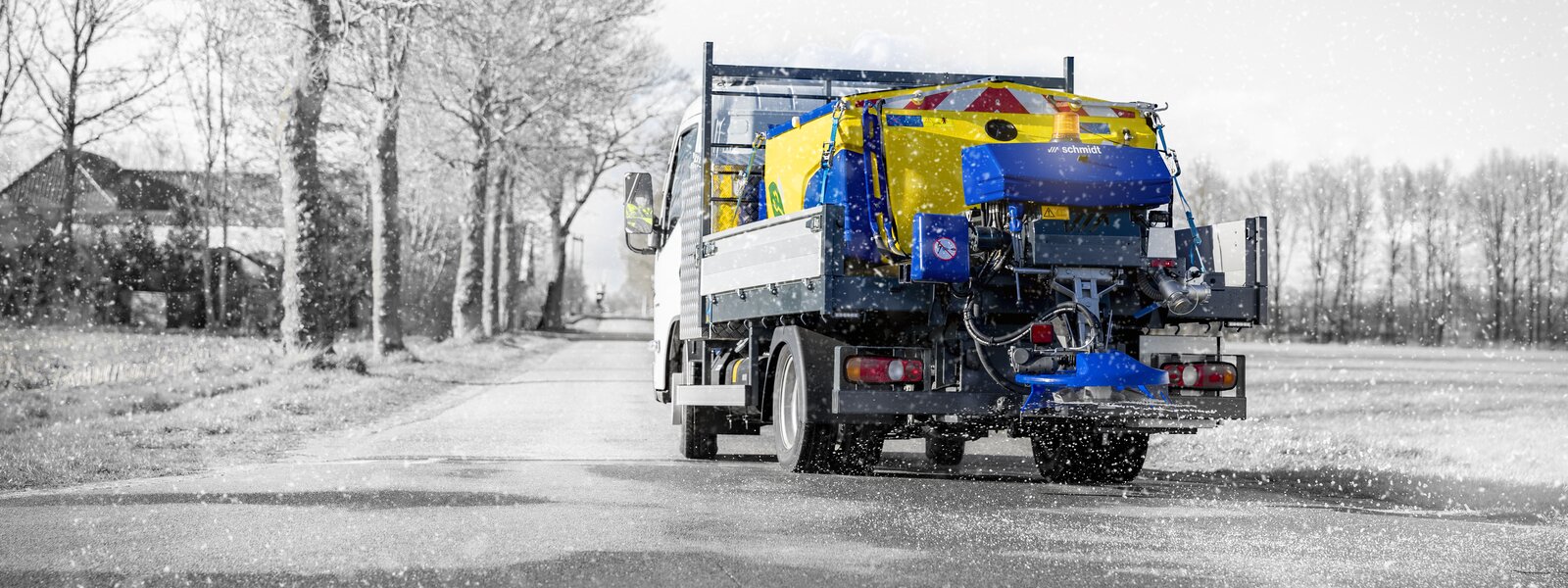 The spreader is equipped with an integrated all-round brine tank with a liquid level indicator and a brine pump with run-dry protection. A rear-side Storz C connection is available for filling and emptying. When switching on the brine (FS 30), the dry material is automatically reduced and the distribution system settings are optimised in accordance with the change in composition of the de-icing agent. The system achieves a high level of accuracy, thanks to integrated sensors for comparison of the actual versus the target value of the control loops.