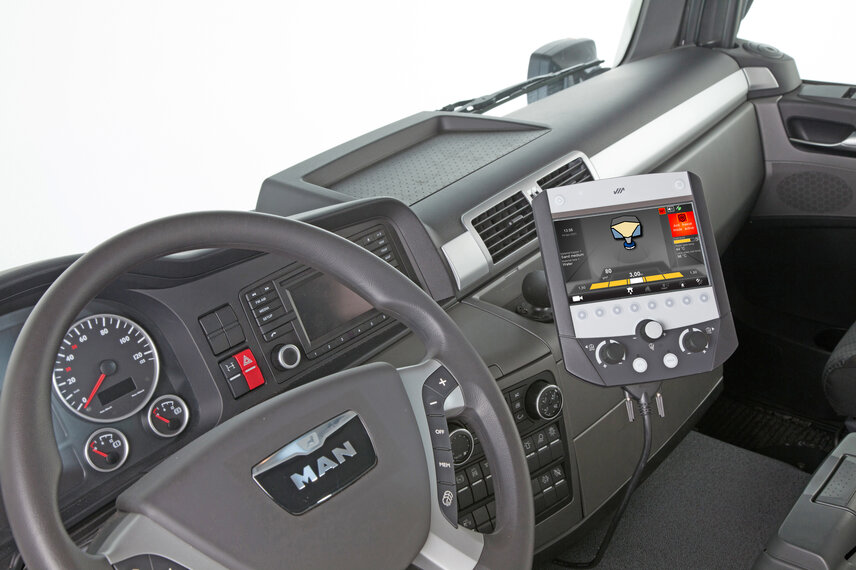 The Stratos Lava is driven by the existing hydraulic system of the carrier vehicle and operated via a fully road-speed related ES control system with additional Lava functionality, which, thanks to easy-grip click-turn knobs and illuminated pushbuttons, ensures that the driver can concentrate on the traffic and road conditions during his work. The ES control panel can be used to set both the normal wet salt and the special Lava functions, such as the preheating temperature and the frost protection function.