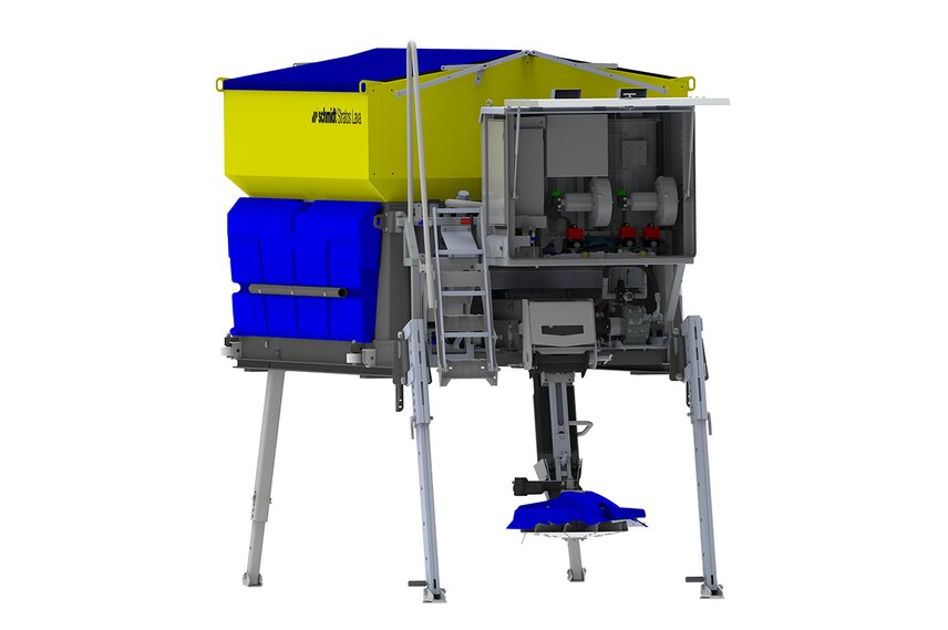 The laterally arranged water tanks are made of impact- and cold-resistant polyethelene with integrated baffles. They are filled via a stainless steel filling and draining connection at the rear with an integrated tap/filter combination. The suction point is located in the middle of the tank, which makes operation in otherwise unfavourable mountain regions possible without any problems. A solid, directly hydraulically-driven gear pump ensures automatic speed regulation when brine is added.