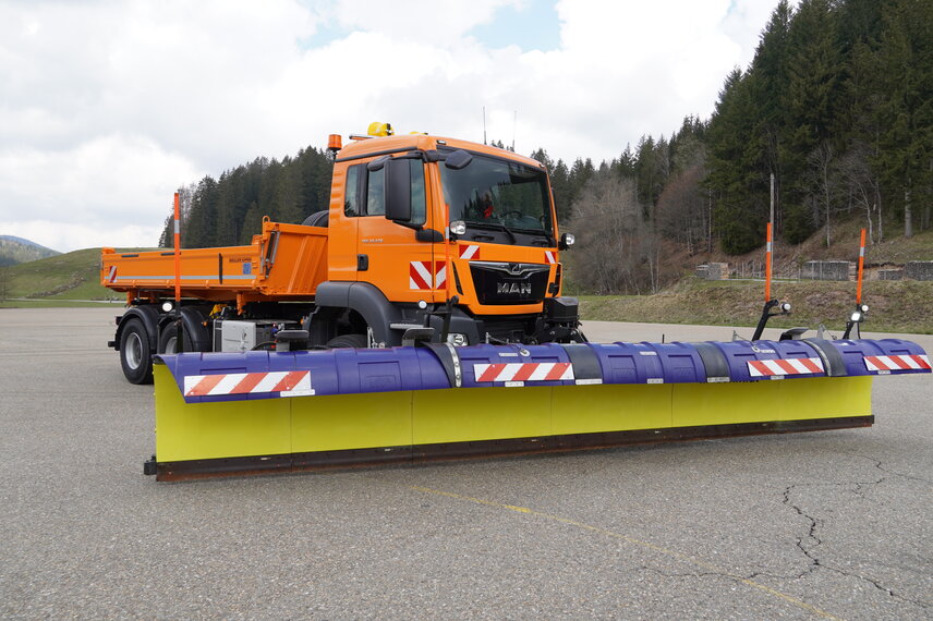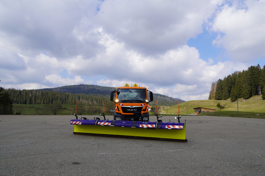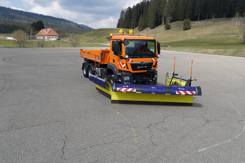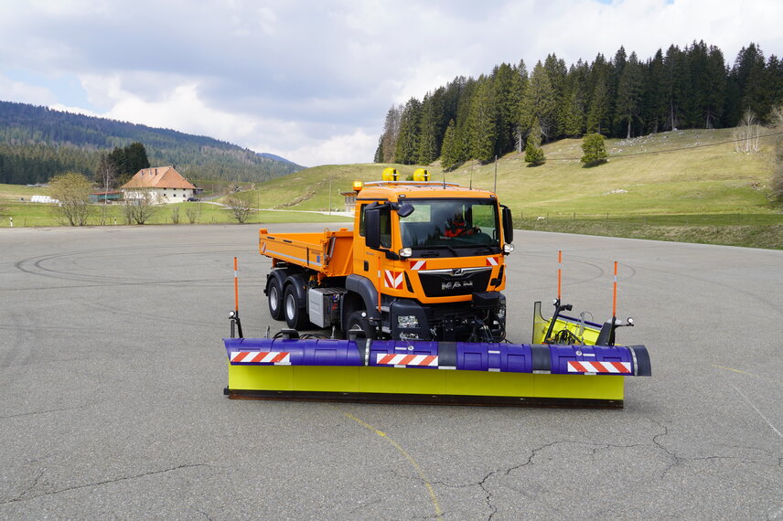 Un déflecteur à neige empêche la neige légère de tourbillonner jusqu‘au pare-brise du véhicule et donc toute mauvaise visibilité du chauffeur. Vous avez le choix entre trois variantes: