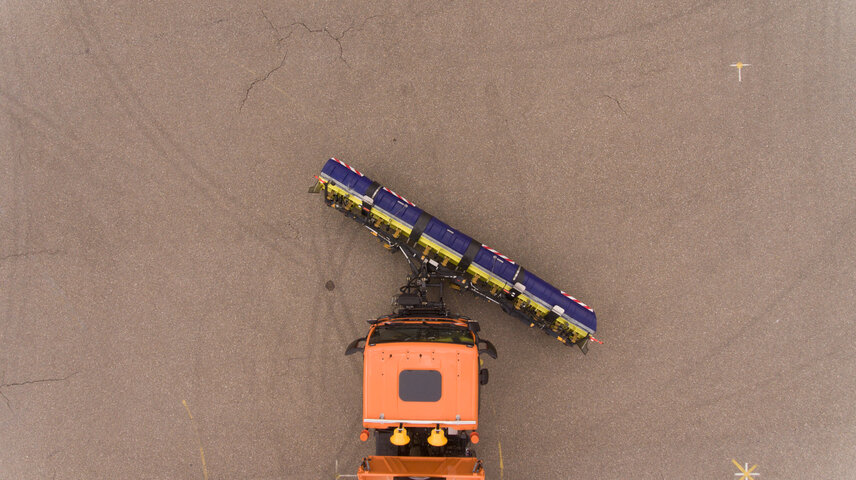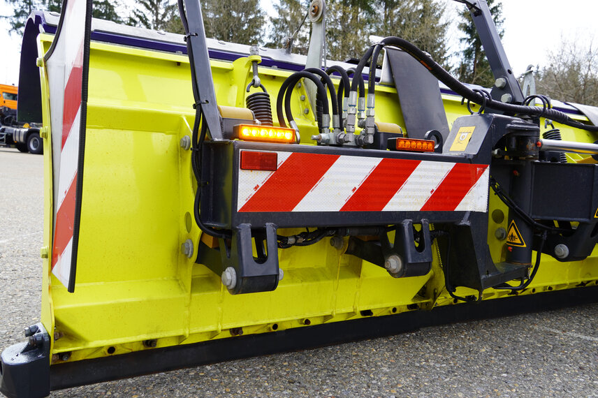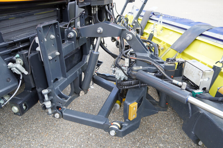 Deux vérins hydrauliques double effet d‘orientation renforcés travaillent simultanément en opposition pour une grande force de mouvement et de maintien en position biaise souhaitée sans aucun battement. Le système d‘adaptation de l‘angle d‘orientation permet de base le déneigement de la lame sous différents angles. Les capteurs d‘angle d‘orientation empêchent une collision avec le véhicule lors de l‘escamotage du panneau d‘extrémité gauche. Entretien plus facile de la lame grâce à l‘utilisation des mêmes vérins hydrauliques pour le dispositif de relevage et d‘orientation ainsi que pour le fonctionnement des panneaux d’extrémité escamotables.