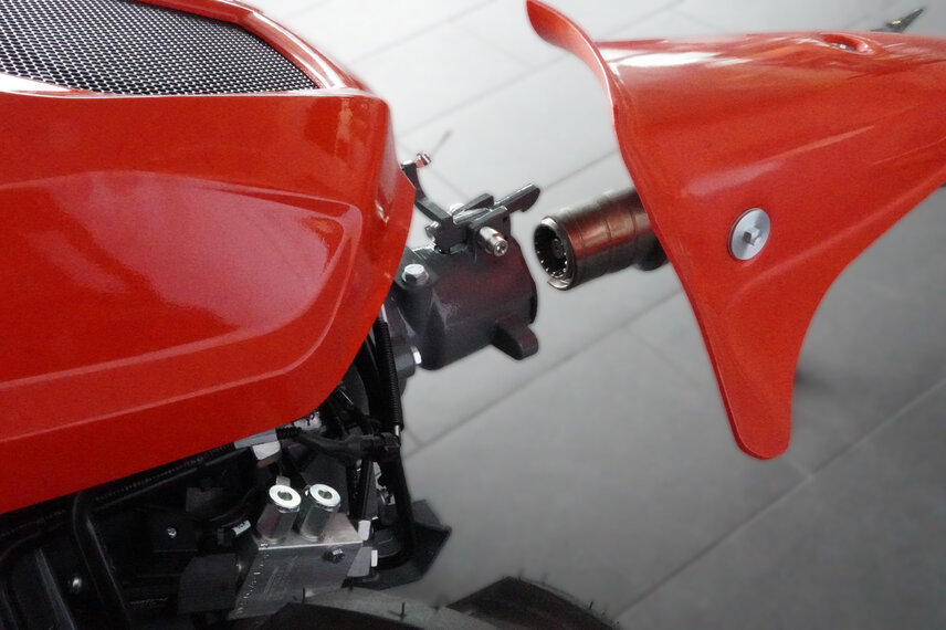 Gli attrezzi sono azionati meccanicamente tramite il collaudato connettore rapido Aebi. Questo azionamento meccanico è il cuore di una trasmissione efficiente che aziona gli attrezzi senza alcuna perdita di potenza operativa. L'elevata efficienza che ne deriva porta a un aumento della produttività e quindi a un risparmio sui costi.