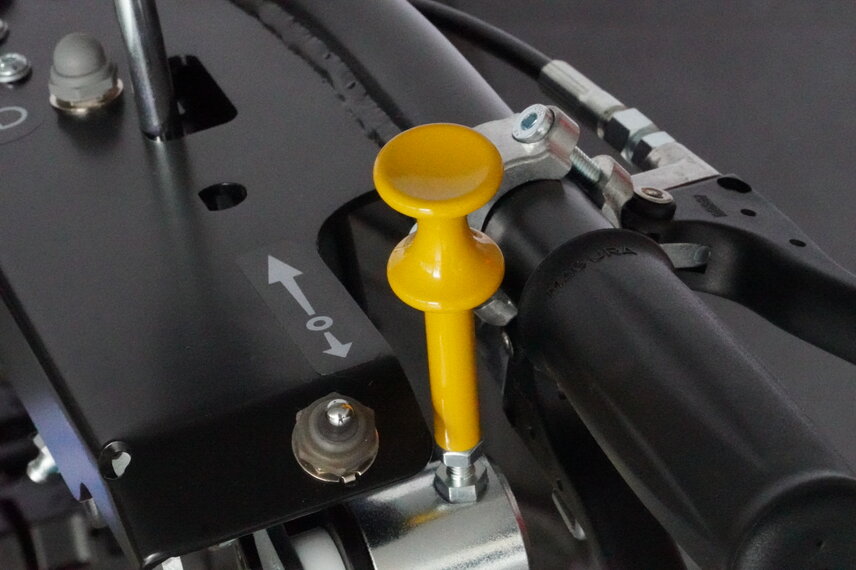 La leva di avanzamento del Combicut è gialla e maneggevole. Basta una leggera pressione del pollice in avanti o indietro affinché la macchina inizi a muoversi, seguendo con precisione il comando. La selezione continua della velocità e della direzione di marcia si effettua con l'impugnatura del pollice. In posizione di retromarcia, la leva di marcia ritorna automaticamente alla posizione zero quando viene rilasciata, creando così una condizione di sicurezza. Sul CC 140e, il Tiptronic a 10 fasi aumenta ulteriormente il comfort operativo e consente di lavorare in modo ancora più preciso. Il semplice funzionamento, in combinazione con il sistema di sterzo attivo che reagisce a una leggera pressione laterale sul manubrio, consente un comfort di guida ai massimi livelli.
