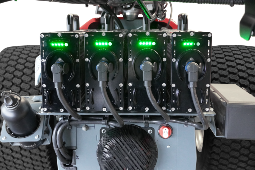 La sostituzione delle batterie è semplice, non richiede l'uso di attrezzi ed è facile da effettuare sul retro. Ciascuna delle 4 batterie pesa solo 13 kg. Grazie alla possibilità di sostituire le batterie durante l'uso, non si rendono necessari inutili tempi di inattività o recarsi a una stazione per la ricarica.